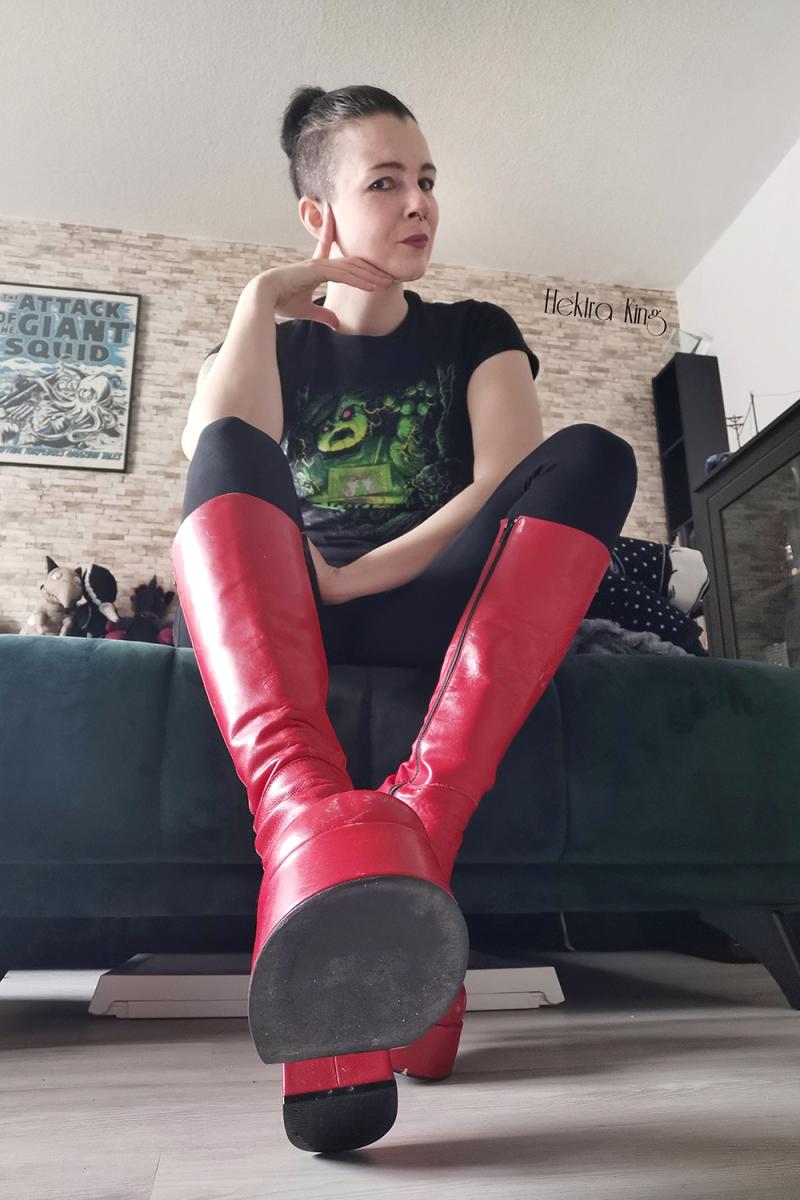 Knie dich hin, kleiner Gnomi und erwarte etwas Neues, eine kleine Überraschung. Stiefel, Strapon, Leder und ein bisschen Spaß damit.